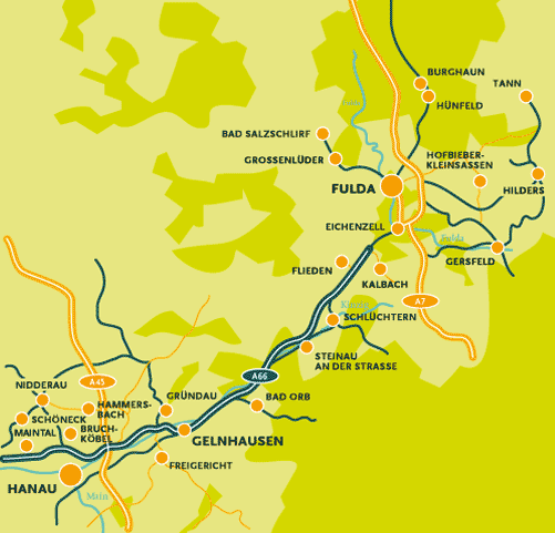 Übersicht der Veranstaltungsorte des Kutursommers Main-Kinzig-Fulda
